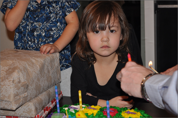 Sunday morning (the 6th…the day Kylie was born) I was crying to her telling her I didn’t want her to turn 4 and asked if she could stay 3 forever. She saw the tears in my eyes and looked really sad. Then all afternoon, when I told her she had turned 4, she would correct me and say, “No, I’m three.” For the last few months she was so excited to turn 4 and I think because I was really sad about it she tried to make me happy by saying she was 3.