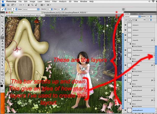 This theme was created using a combination of different kits from Irene Alexeeva Designs. I think I used elements from about 4 or 5 different kits. The majority of the layout is from the Make Believe kit. Below is a snapshot showing just how many layers were required to create the layout.