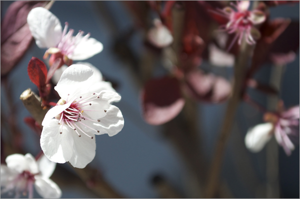 Here’s a close up of a flower from the bush. This bush looks so much like the actual plum tree that produce plums except it sits lower on the ground and doesn’t produce any plums. I think they can grow pretty tall and I also think they flower all summer long.