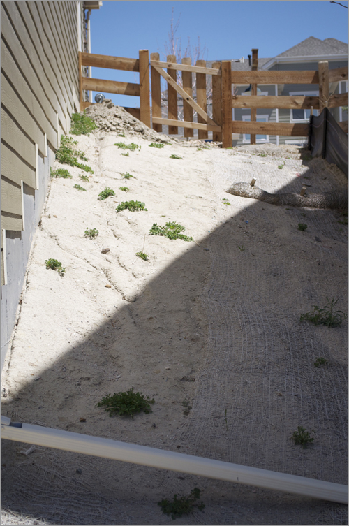 We are starting on the walkway. Originally, it was so that we could transport rocks, dirt, sod, trees, etc., down to the backyard but now husband is thinking of doing all that on the other side of the house were there is more space and the hill down isn’t so steep. We still have time to really decide on that.