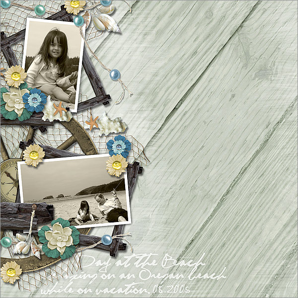 The kit used in creating these two layout is called Upon a Watercolor Sea by Jennifer Z Designs.