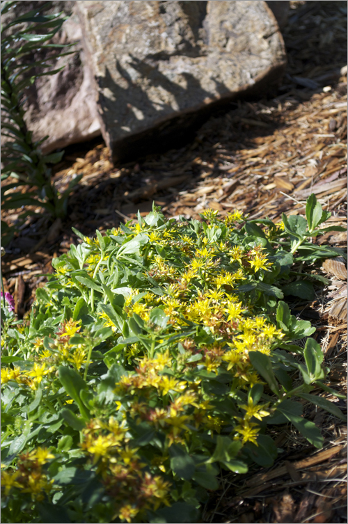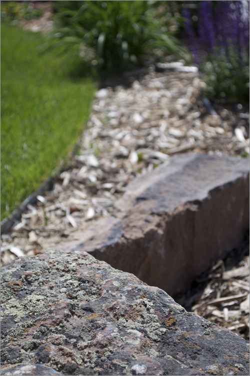 It’s not complete yet. We’re thinking of getting a really big moss rock delivered to replace that little one all alone in that photo above, near top. As for the three rocks near bottom, I think we might leave them and grow some colorful perennials around them.