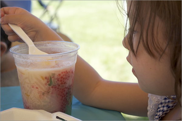 Kylie loves Nava. She’s not so big into the tapioca pearls or the white and slimy green things or the crunchy red things. She just goes for the liquid.