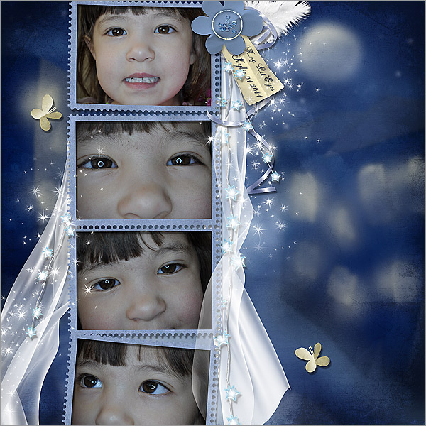 This layout was created for a catch light photography challenge at Scraporchard.com. The photos used are from earlier this year when I first got my ring light. I talked about ring lights here and here. The papers and elements are from the Tom Thumb kit by Irene Alexeeva Designs.