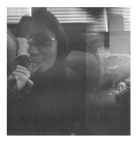 I first used the black and white film because it was 400 speed and I was taking it indoors (my Holga is flashless). Out of the 16 exposures, only 7 were developed because the others were probably exposed to light when I loaded and unloaded (I forgot I was supposed to do this in the dark), and out of the 7 photos, there was only one I would call decent. Two other were not bad.