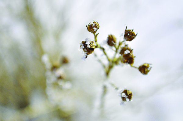 Over the weekend, while the girls and I were heading out to buy Valentine stuff for their school’s Valentine card exchange, I saw glittery frosts on the front yard weed and just had to get photos of them. I made the girls wait in the car while I spent about 15 minutes shooting. LOL!
