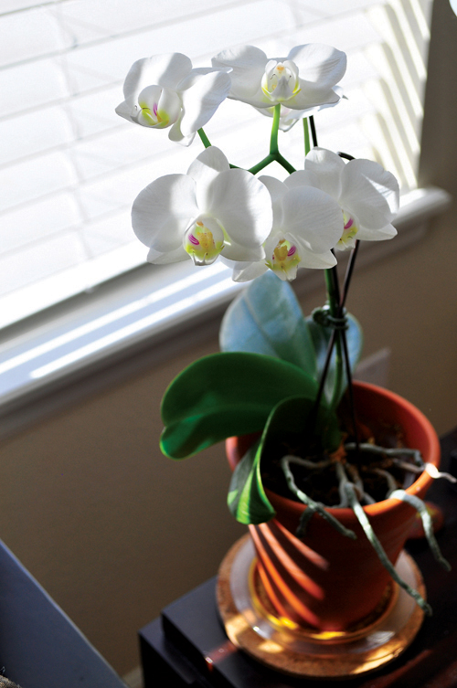 I can’t forget the orchid that was in the dining room.  I’ve moved it to the great room.  This has been the longest this little orchid has stayed bloomed.  I wonder if it’s because I smile at it at least once a day.