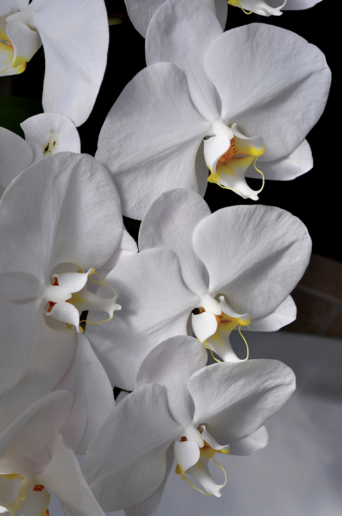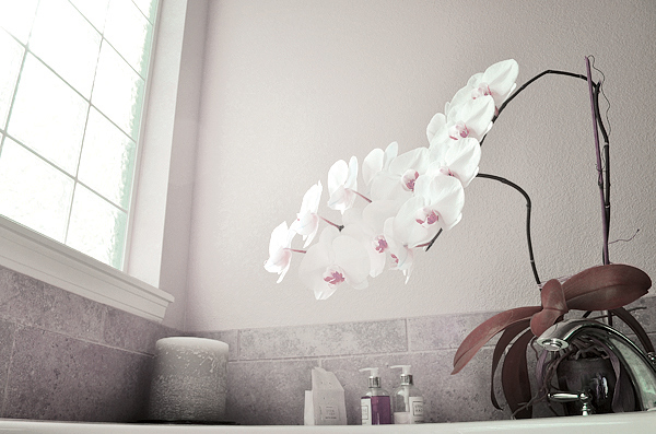 Today, I wanted to share a few photos of the master bath orchid.  I’ve mentioned in a past post that there were two stalks with buds about ready to bloom.  Currently, they’ve all been bloomed for a couple of weeks now.  I’ve just recently had the time to photo them.