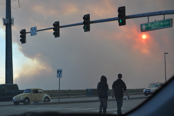 This evening, a pretty large fire broke out near Aspen Park and Keystone area. We live pretty far from it, but from my neighborhood, we could see the smoke and the bright red sun.