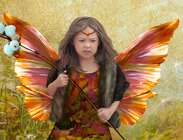 Additional credits: Textured paper and blueberry branch by Lorie Davison (at Scrapbookgraphics), Wings by Adaae (at Deviantart), and fur texture by sugarpultry (at Deviantart). Fonts: The King and Queen (dafont.com).