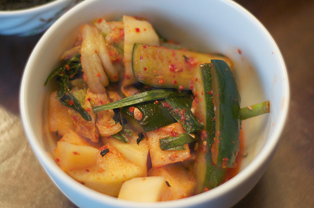 MIXEDKIMCHI0005_640Kimchi: Cabbage, cucumber, and daikon.  I’m the only one in the family that LOVE kimchi so it was all for me.  I still have a lot left…should last me this whole week but I really don’t know if I can eat it all by myself.