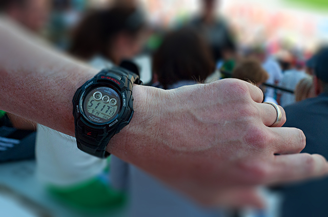 Waiting for husband to run by. There were quite a few runners in unique outfits and clothes. It made it exciting to watch.