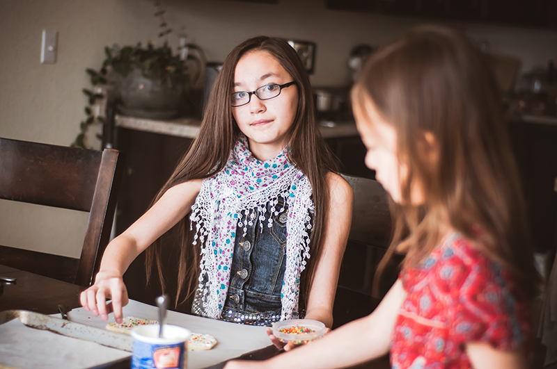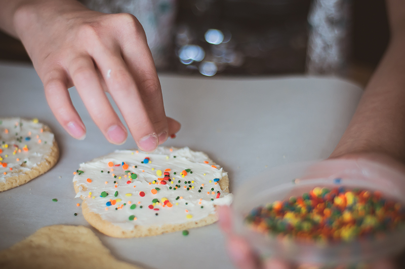 My 7-year-old had this fabulous plan to make and decorate sugar cookies. I wasn’t able to make the sugar cookies from scratch because of limited time so I bought premade dough. They turned out pretty tasty even thought they lost their shape in the oven.