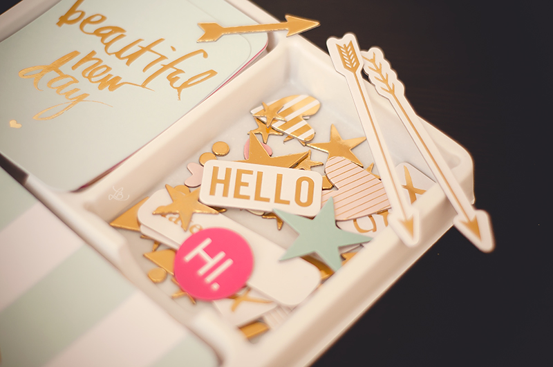 An update on my kits. I couldn’t find the box for the Amber edition so it’s missing from the photo. The two smaller kits on top were recently purchased this week. I haven’t opened the Super Cute kit yet but will be using it for my kids toddler years. The Foil Kit, designed by Heidi Swapp, is so beautiful. My 7-year-old created a cute card for her substitute teacher, who’s last day is today (her real teacher was on maternity leave), using a journal card and embellishments from this kit. She ended up using all the diamond shaped embellishments. She loved them so much. I had wanted to take a photo of the card but had already sealed it. The best part of the card was not the journal card and embellishments, unfortunately, although they were pretty awesome. The best part was her drawing. She told me, “Tape the photo (of her with her sub-teacher taken last month) up high because I’m going to draw [teacher’s name] and me holding the photo.”