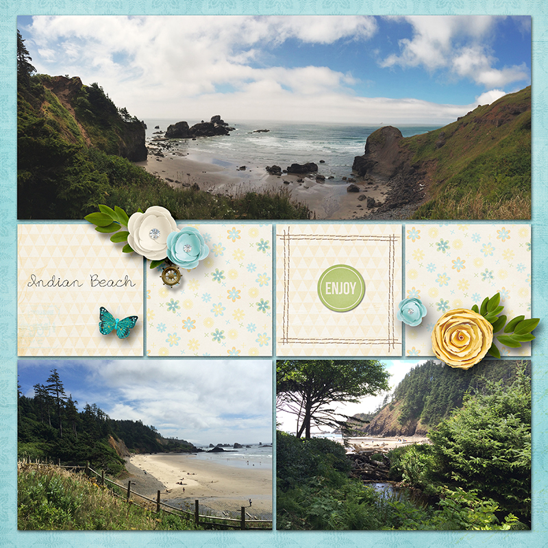 I created the book in Photoshop. I used digital kits I purchased and kits downloaded free. After creating individual pages, I uploaded to Shutterfly and simply drag and drop onto the book pages. Here are a few pages of what will be in the book: