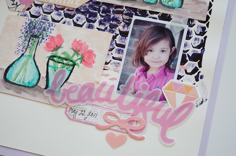 Really enjoyed this lesson on color harmony and on canvas. I had some canvas boards on hand. Had them for maybe 2 or 3 years for a rainy day when my daughters might want to paint. Took one apart to paint in smaller blocks (see previous post for example). Ephemera by Pink Paislee. Stencils by Tim Holtz and Momenta. Acrylic paint by Reeves.