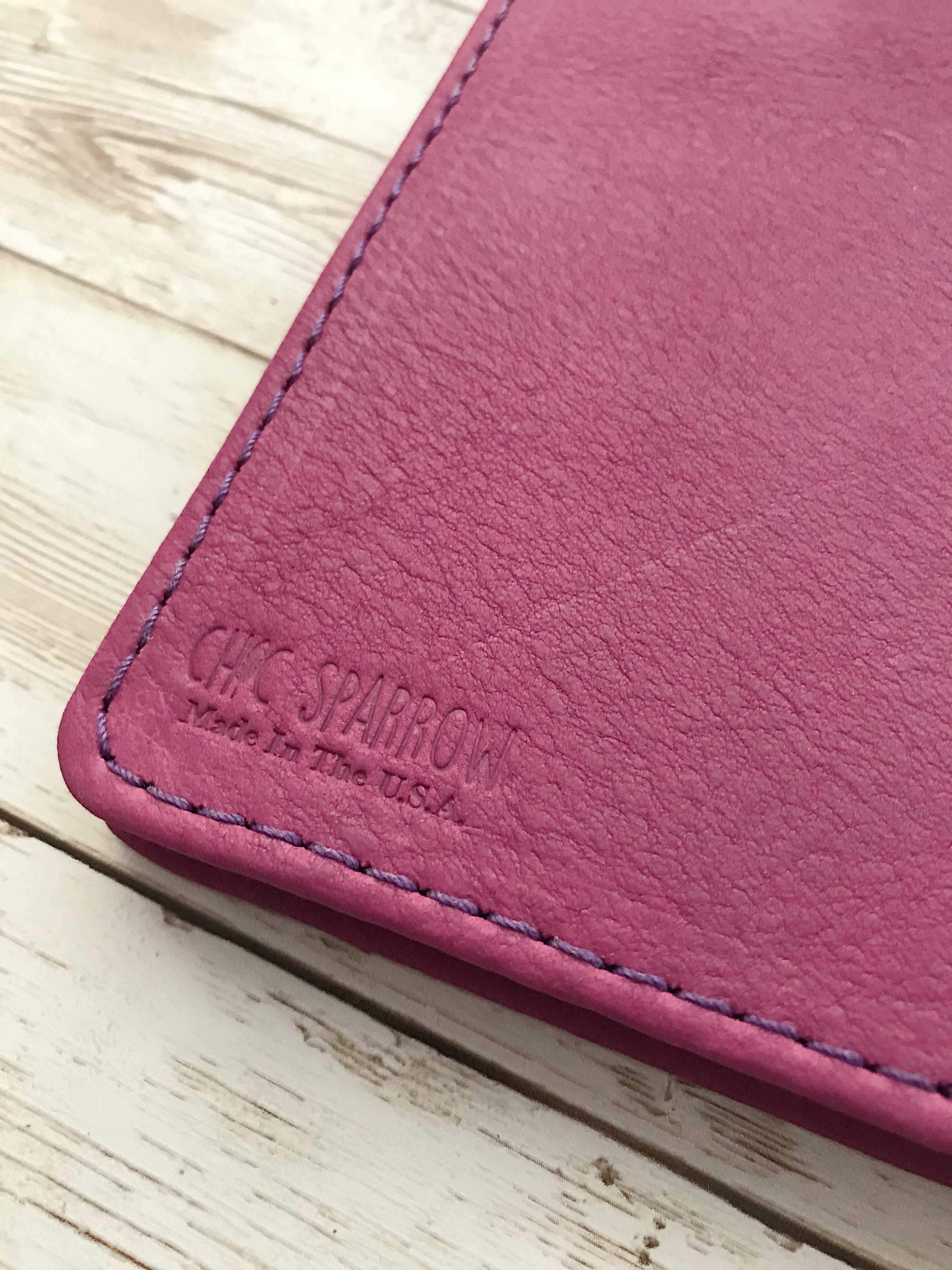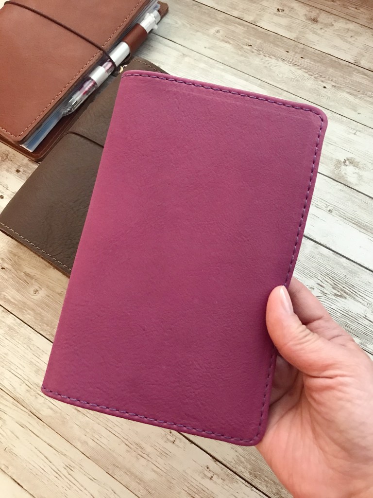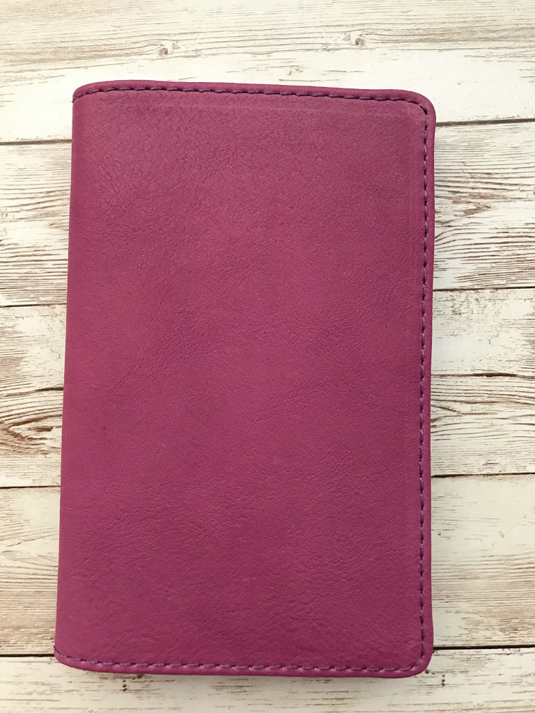 This pretty little thing came in the mail yesterday. It’s a Chic Sparrow B6 Slim Folio in the color Huckleberry. It is from the Crème line, which is a thick leather. The Huckleberry B6 Slim Folio is different from what I expected. I thought it was going to be thick but it’s been pressed very thin. At first look, I wasn’t sure what to think, but pretty quickly, I fell in love.