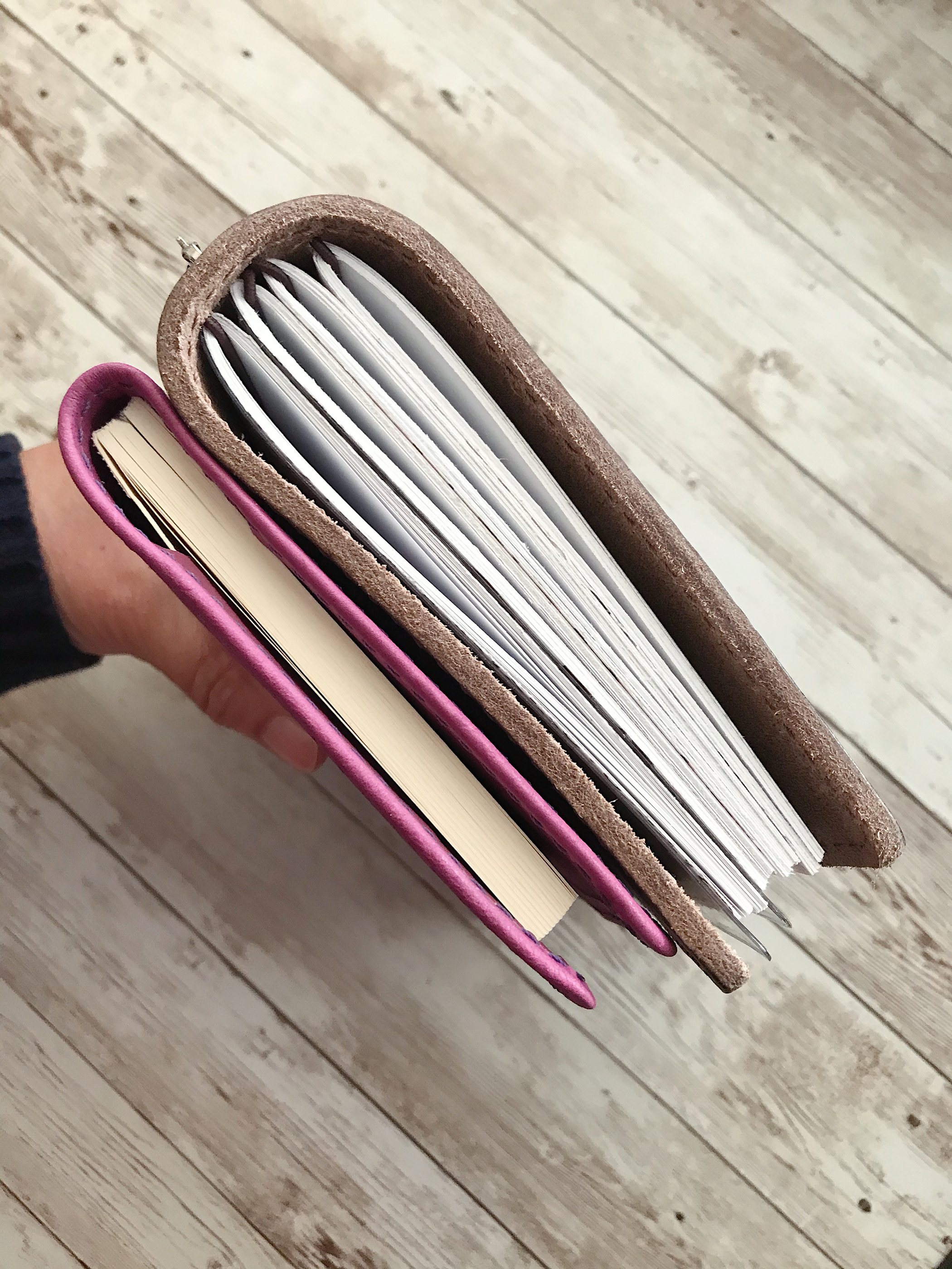 I have quite a lot of traveler’s notebooks. It all started with the Midori Traveler’s Notebook which I found through the planner girls on Youtube and Instagram five years ago. What I love about the Chic Sparrow leathers is that they are super high quality. They only sell full grain leather and they have superb service. For instance, I specified smooth leather on the Brûlée and Huckleberry and they came through. I didn’t ask for anything on the Chocolate because I wanted to be surprised and what I got was gorgeous.