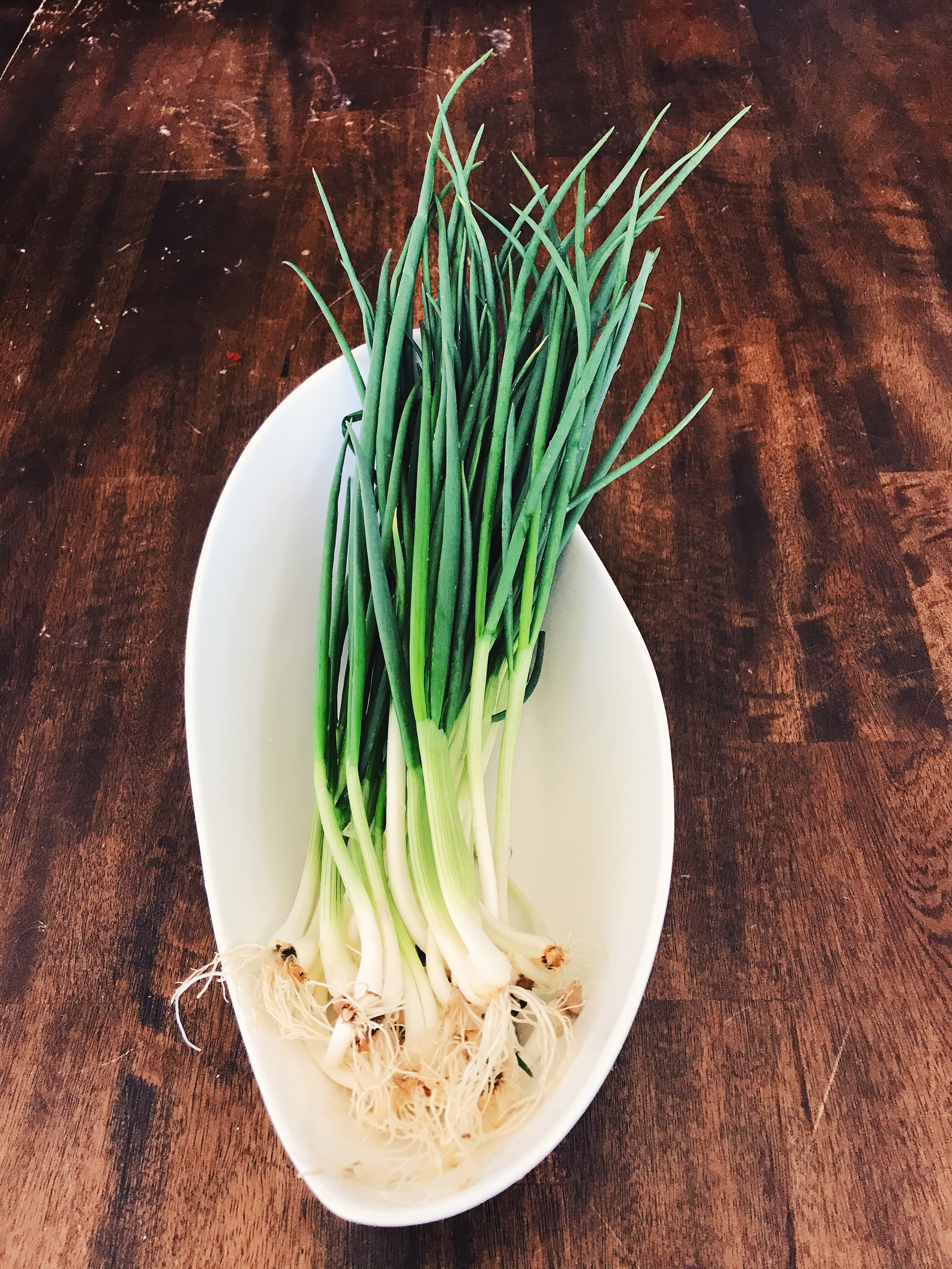 My mother gave me a handful of scallions from her garden and I decided to make scallion pepper sauce with it.