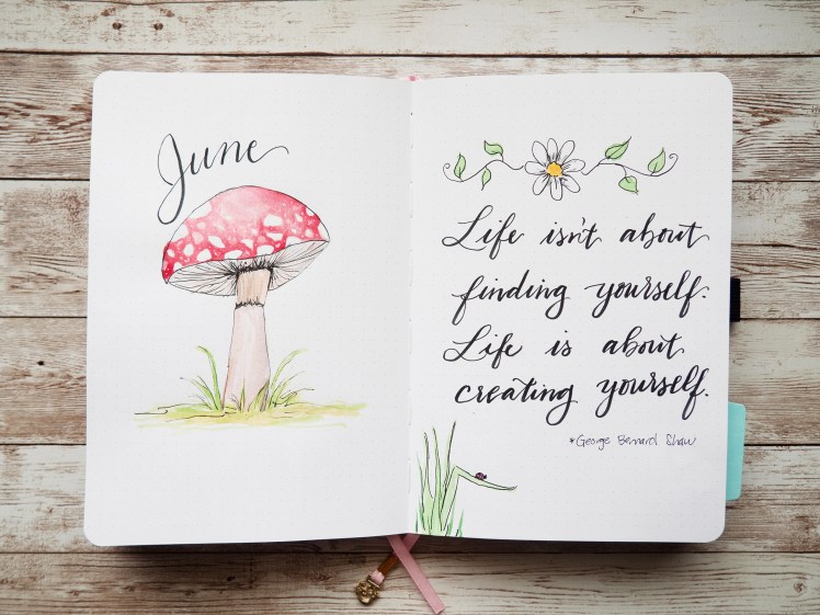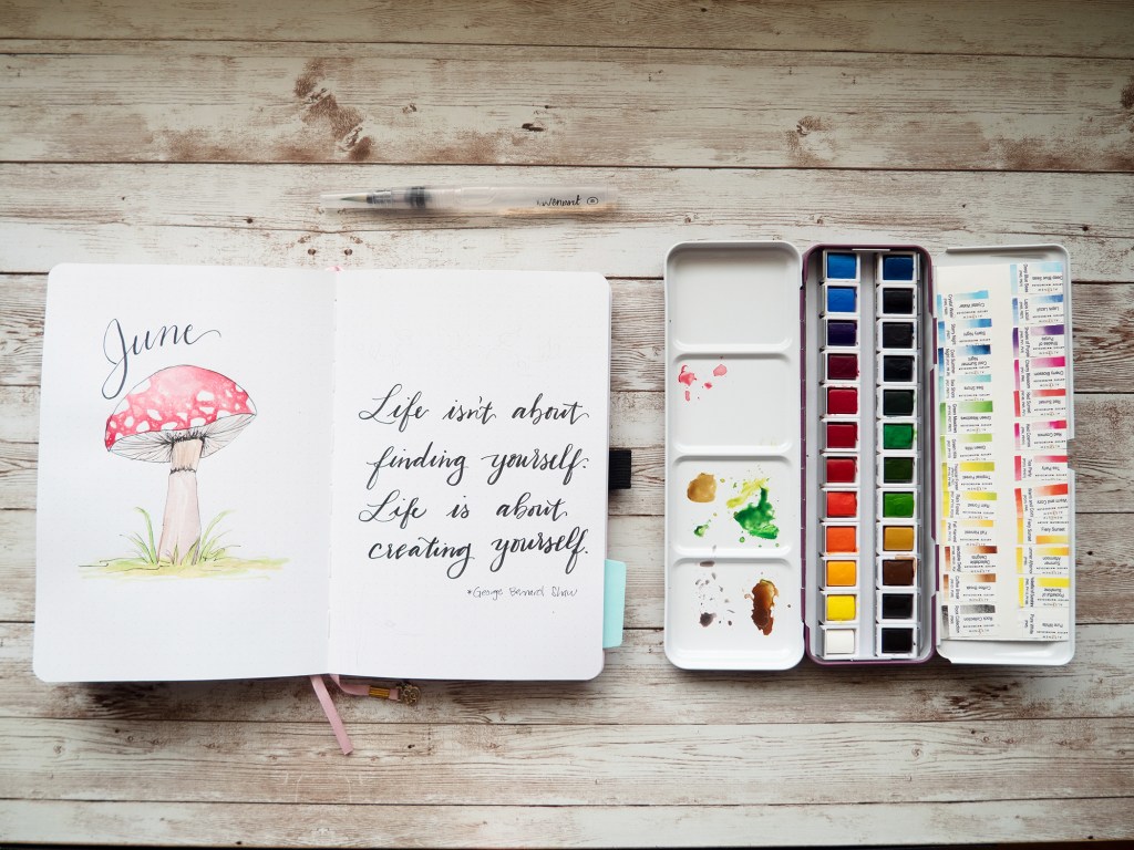 Here was May’s page. For both May and June, I used this watercolor set from Altenew. Earlier in the year I learned Altenew was comging out with a pallet and it looked so pretty I had to have it.
