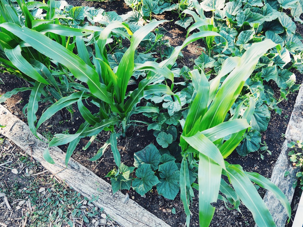 I asked Mom to plant cucumbers, some melons, Thai peppers, and corn.