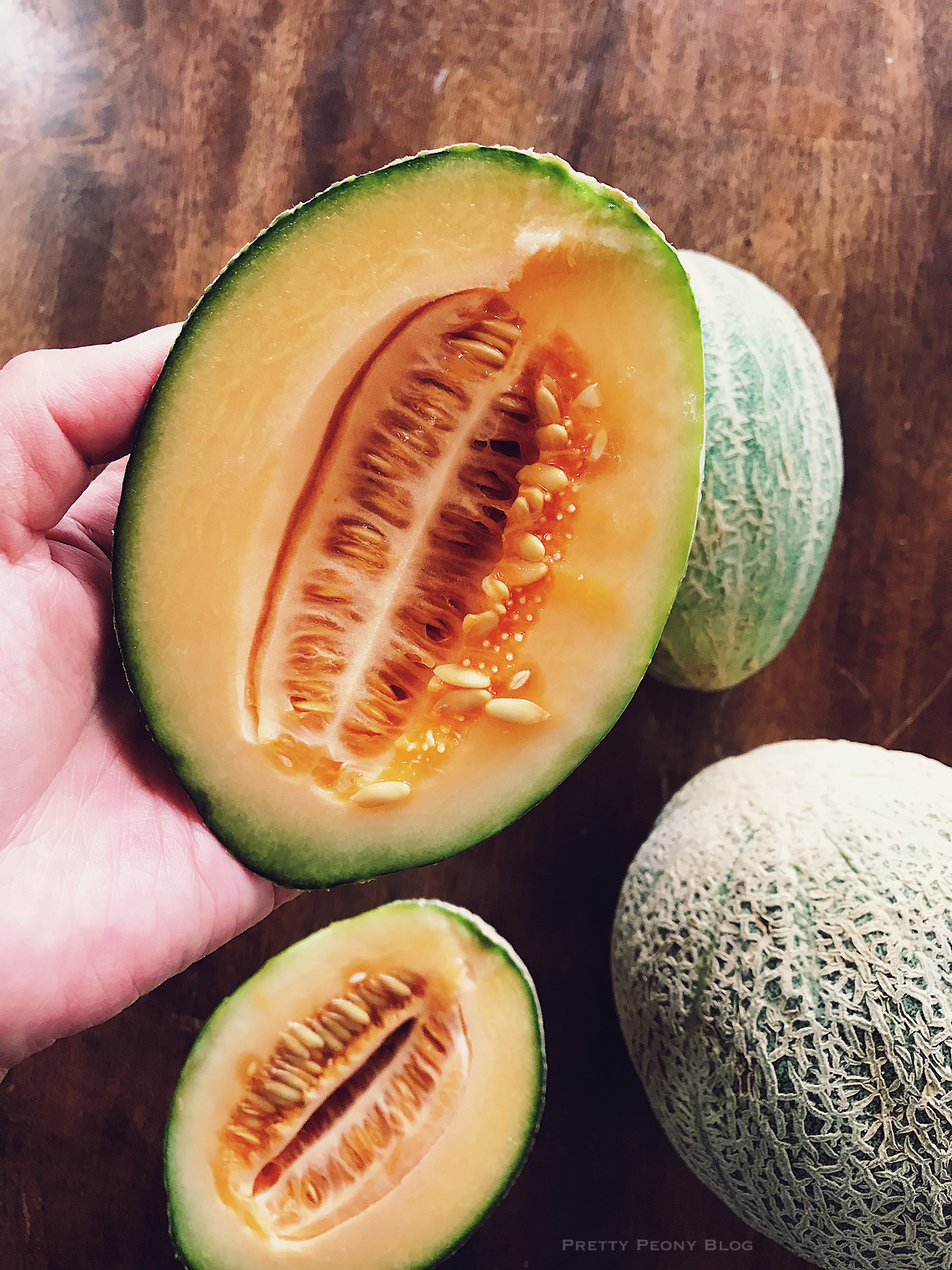 Mom picked these cantaloupe from my plot at the community garden. All were orange inside but one. I didn’t eat that one because I wasn’t sure if it would taste right. I did taste the second smallest one and it tasted like cucumber. I’d love to grow more next year.