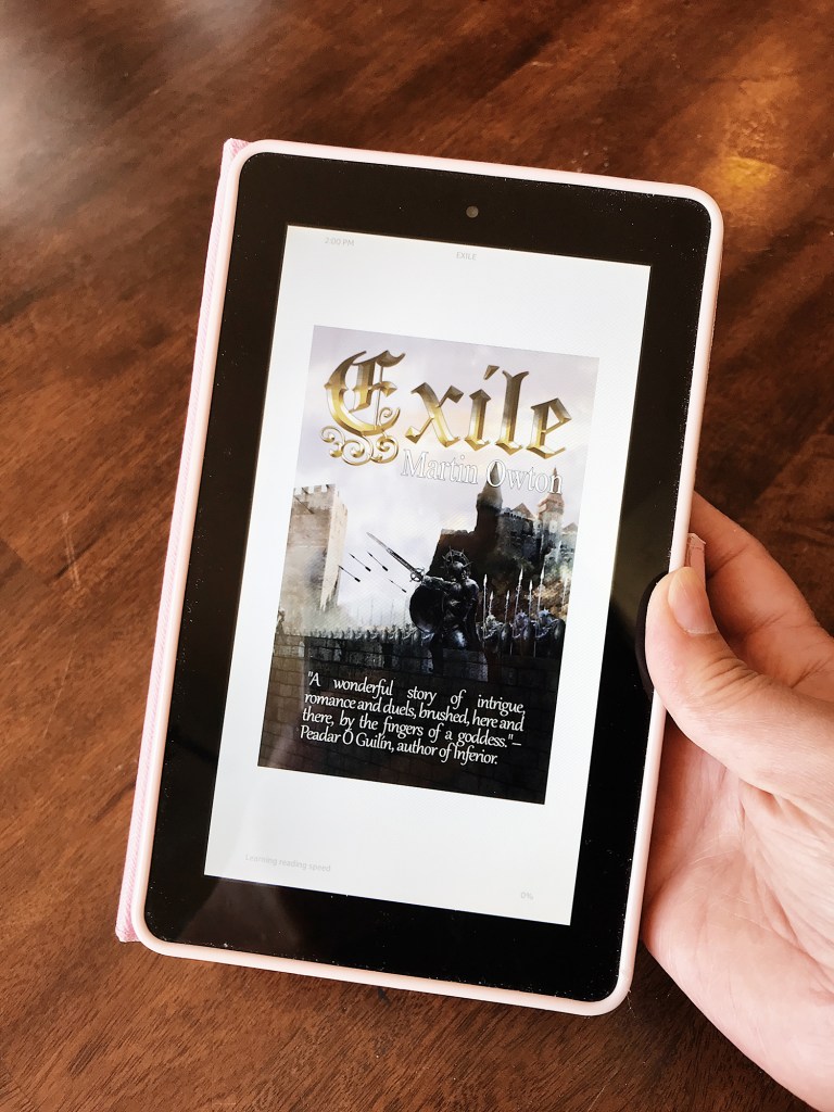 Exile by Martin Owton is a fantasy novel about a man named Aron who was exiled from his home and ends up being asked to protect an earl’s son. Things seem to go smoothly until a brawl ensues and suddenly nothing is going as planned.