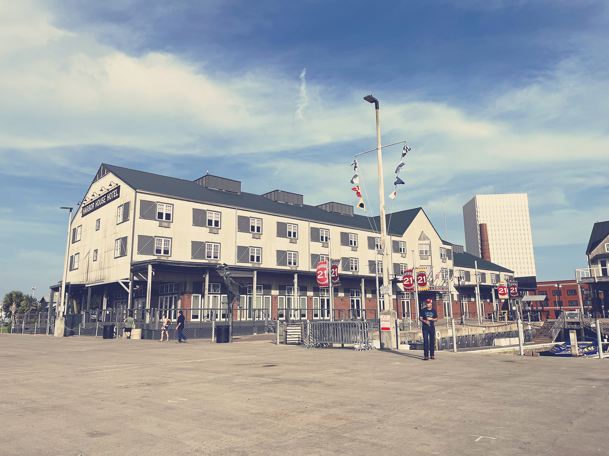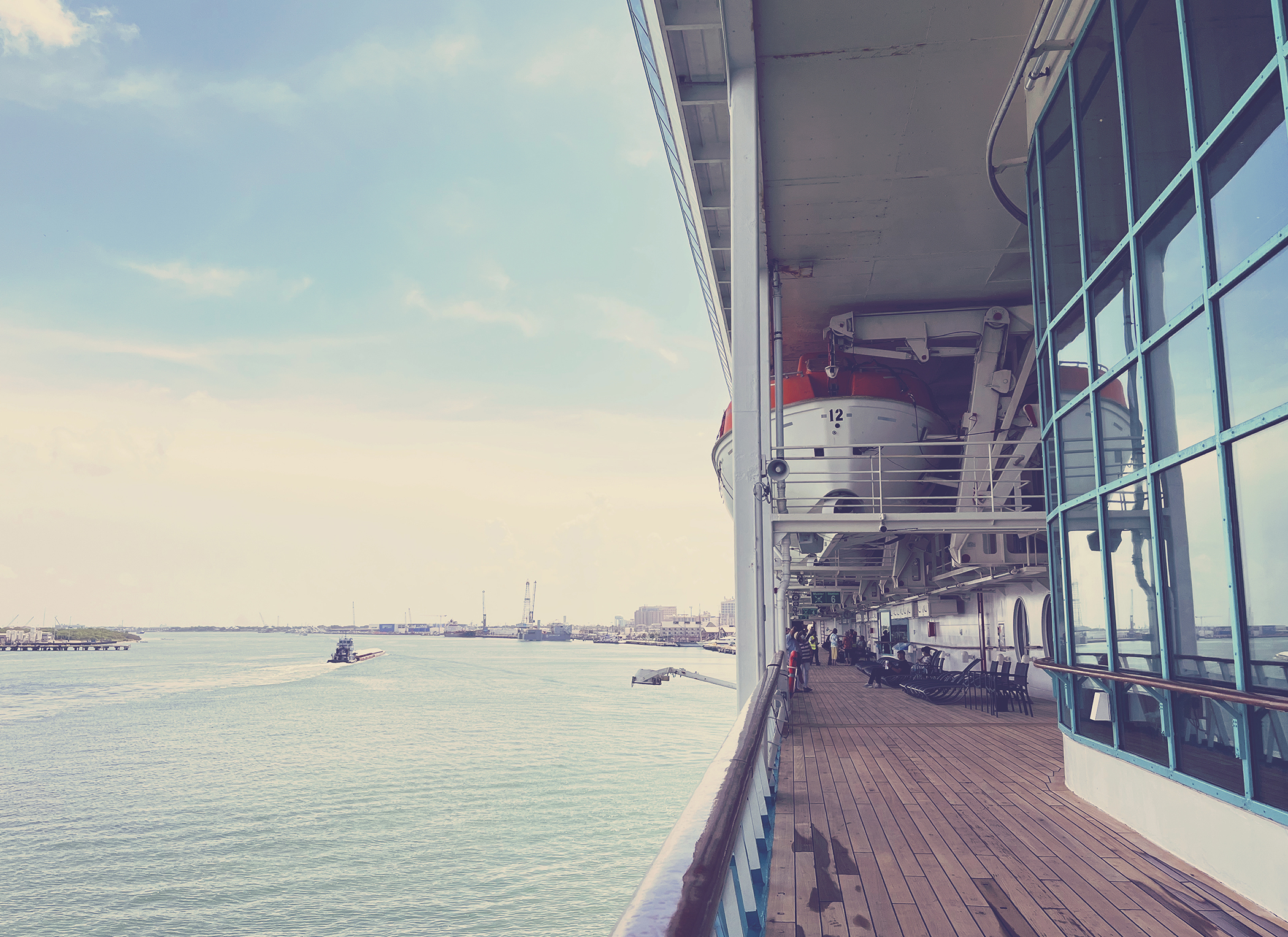 The cruise we took in late July was out of Port of Galveston in Galveston, TX. We stayed at the Harbor House Hotel which was walking distance to the cruise check-in building. We were at the hotel for one night and had time to eat at two restaurants, watch an oil tanker come through the waterway, and watch the sunset with the cutest tugboat in the view.