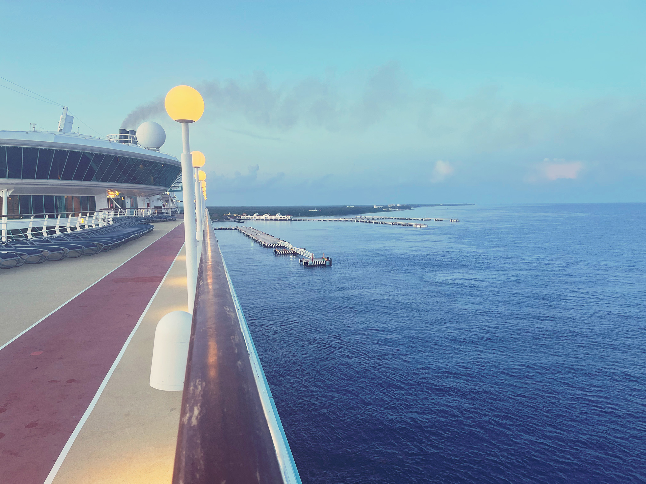One thing I always enjoy about cruising is how beautiful the cruise ships are. When we arrived at the Cozumel port, two Carnival ships also arrived. Husband and I were having breakfast when we saw the two ships.