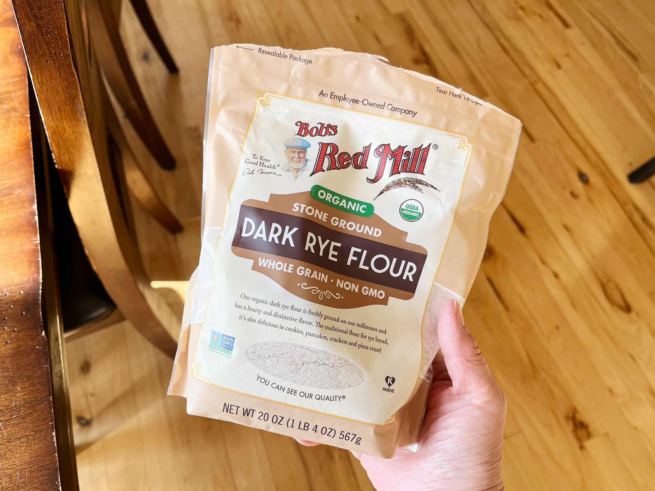 I used Bob’s Red Mill Dark Rye Flour. The bag it came in had the recipe on the back so I decided to try that recipe instead of the one I found on Youtube. However, I didn’t have molasses or wheat gluten so I left those out. I also didn’t have bread flour so I used all-purpose flour.