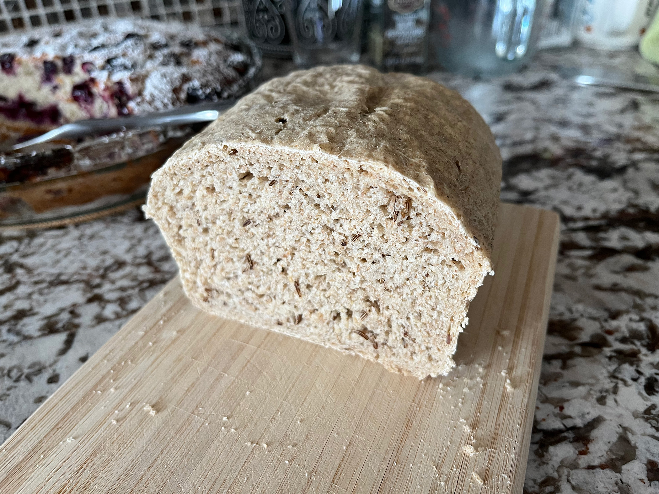Around the same time I made the second lemon blueberry cake, I made rye bread. I love the way rye tastes with caraway seeds so I put quite a lot in. Initially, I was going to make it in a dutch oven but husband knew a little bit about how to make bread (he once worked in the bakery in a grocery store) so we used his knowledge to bake this bread. It’s something I’m sure anyone who’s baked bread knows, and that’s to let the bread rise in a warmed oven for about an hour or so if possible before baking.