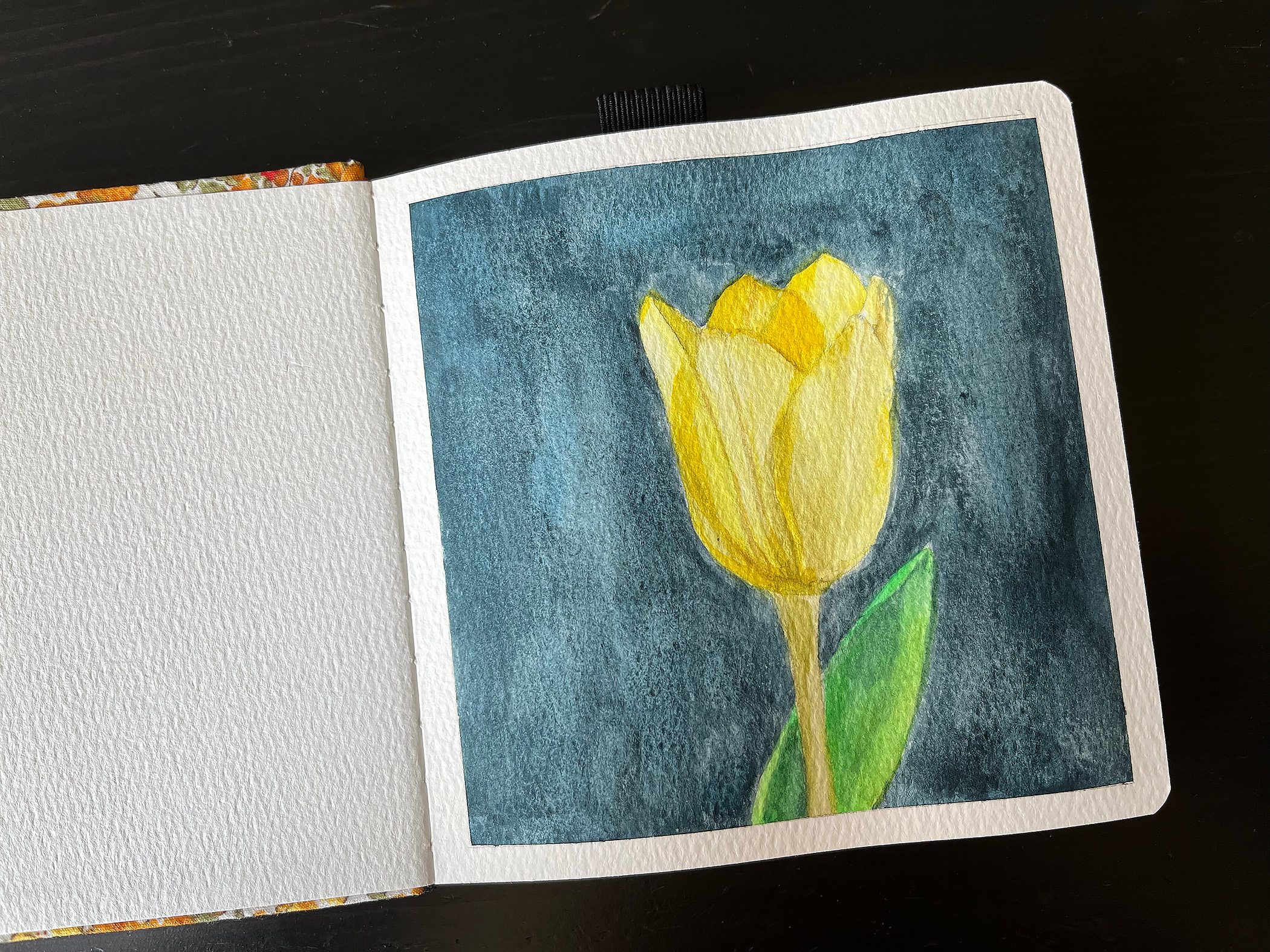 I used a reference photo to draw and then paint the tulip. It didn’t take very long to paint because the paper was excellent. I had a lot of fun painting this flower. I think I’ll use this little book to paint flowers and landscapes.