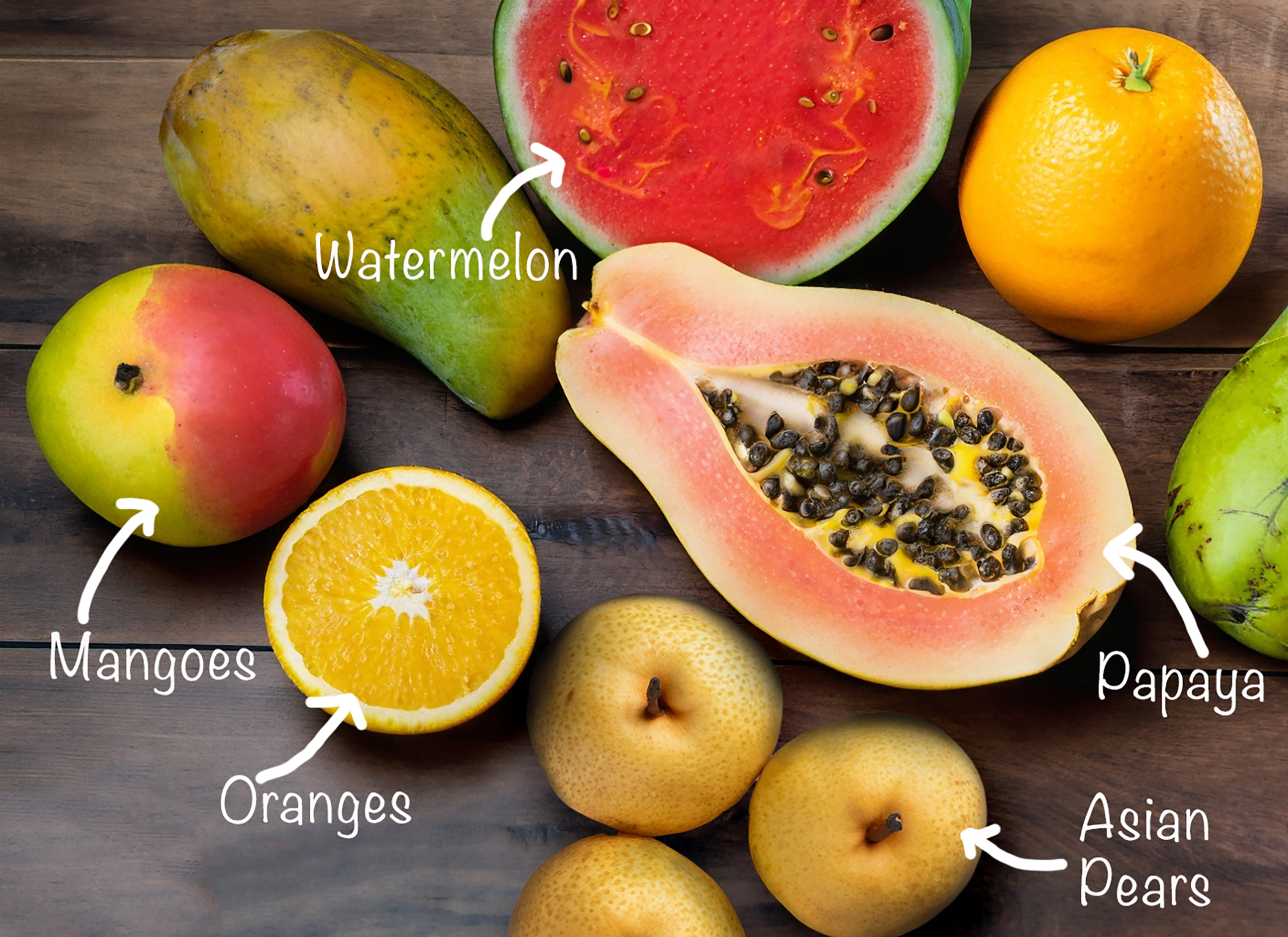 If you’re wondering how I was able to get my favorite fruits all in one image, that’s because I used Adobe Firefly. It’s an A.I. generator for art. Here are the two photos I generated and then in Photoshop CC, I merged them and added arrows and text.