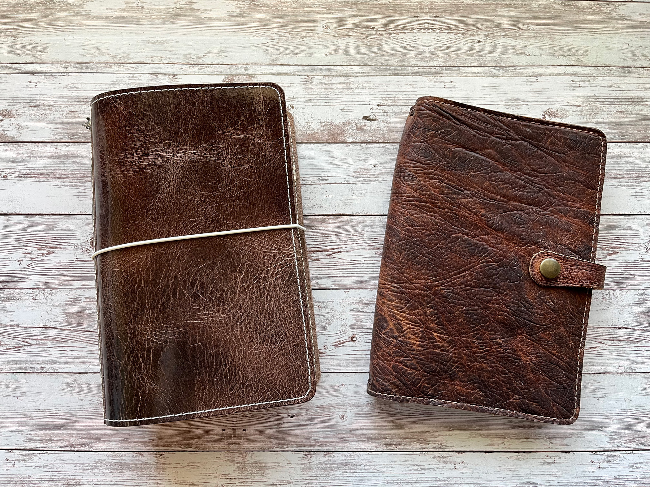 I believe it was in 2015 that I bought my first traveler’s notebook, a Midori. This one notebook cover led to many others, and suddenly, I became a collector. As a kid, I collected stickers, and in my twenties and thirties, I collected lipsticks and perfumes, and now, in my forties, it’s notebook covers…and notebooks too, as you will see later.