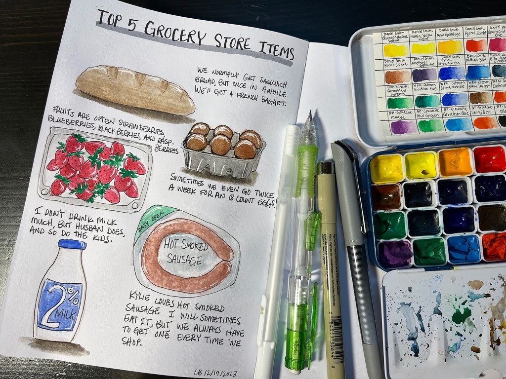 My Top 5 Grocery Store Items Daily writing promptList your top 5 grocery store items.View all responses Decided to watercolor my top 5 items. Share this: Click to email a link to a friend (Opens in new window) Email Click to share on Facebook (Opens in new window) Facebook Click to share on Pinterest (Opens in new window) Pinterest Click to print (Opens in new window) Print Like Loading... Related One thought on “My Top 5 Grocery Store Items” Add yours Lovely! I love your art very much! LikeLike Reply Leave a comment Cancel reply Δ