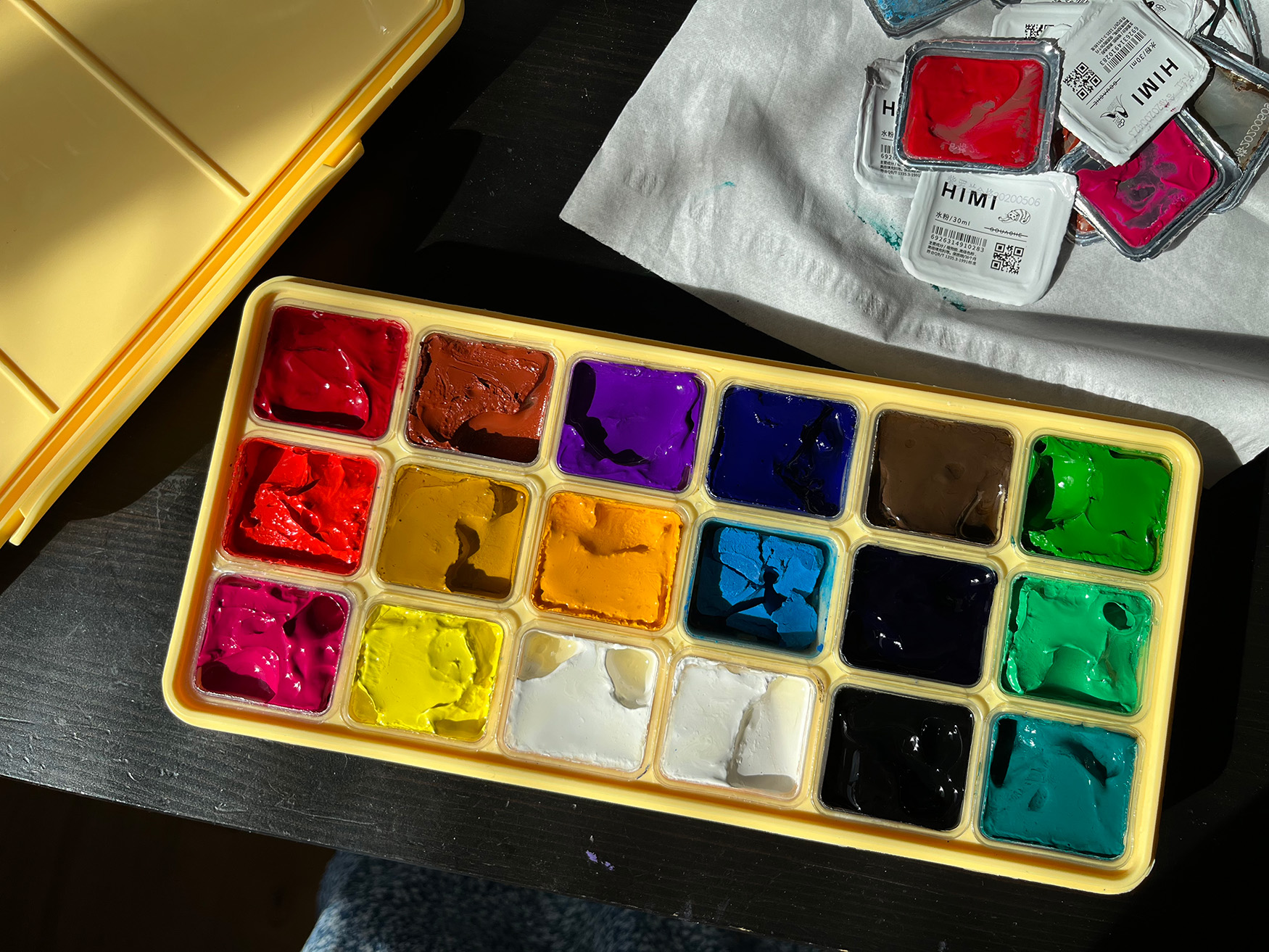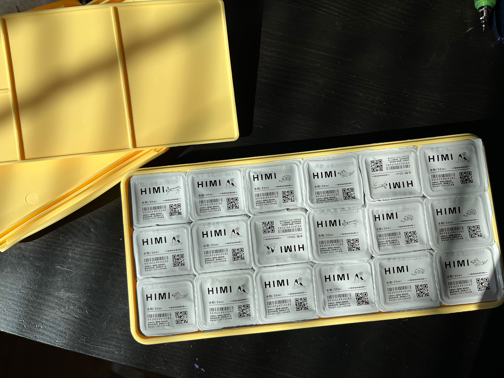 The HIMI gouache arrived with one cup dried out. It was still usable, but I didn’t get to try it in it’s gel state.