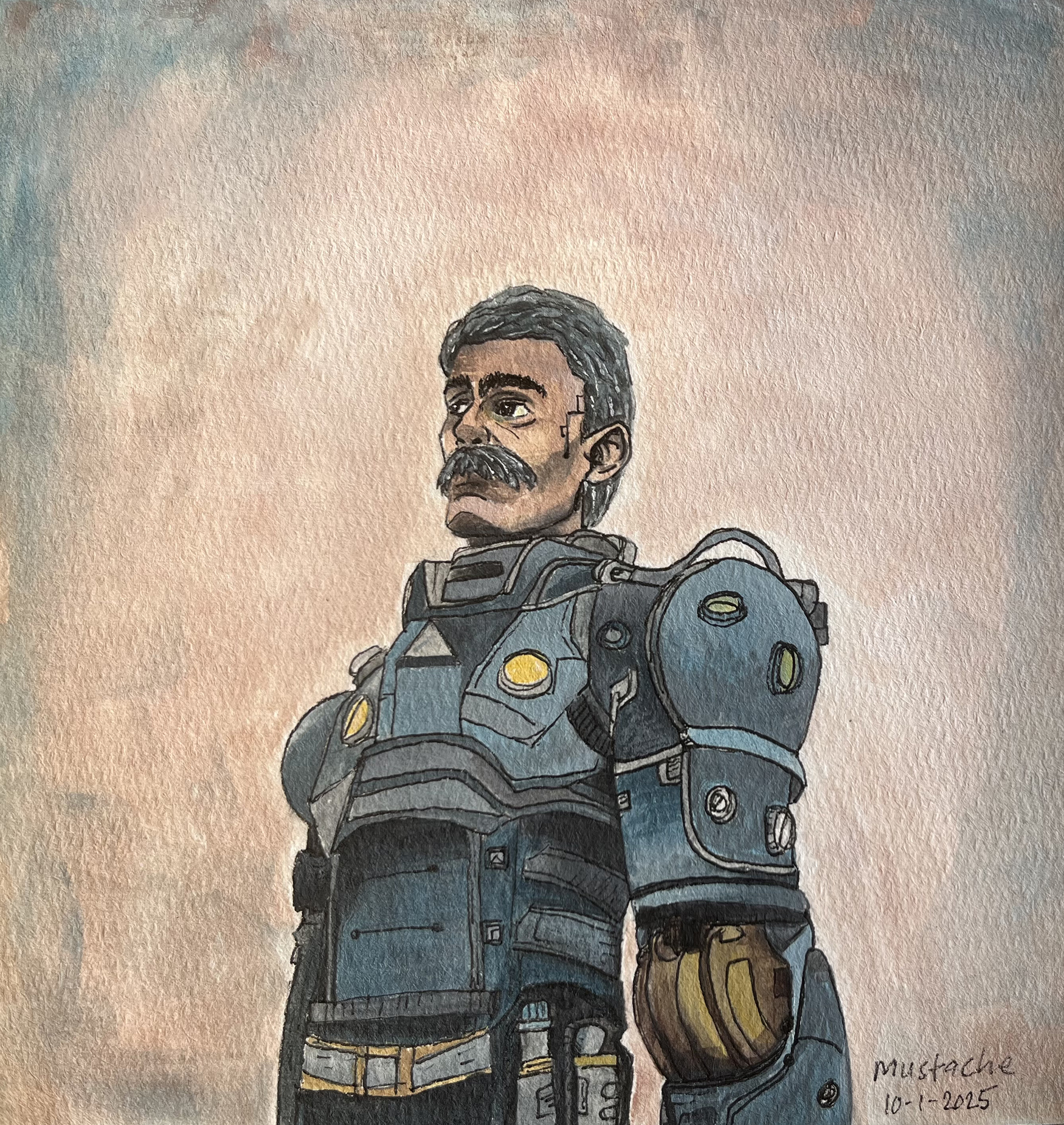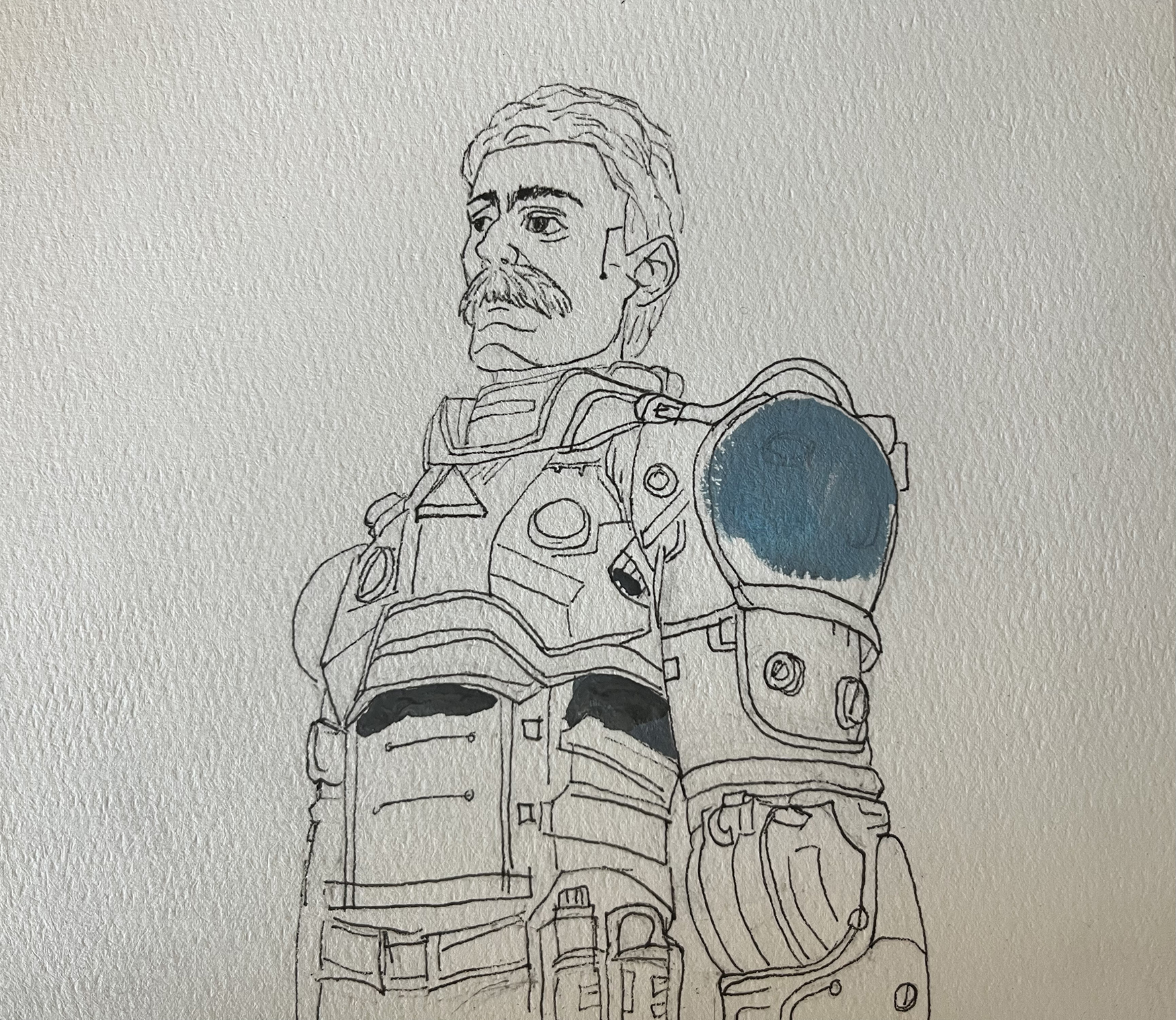 The first challenge was called “Mustache.” I had meant to take a photo of the sketch before painting, but had forgotten so there’s a little paint on it.