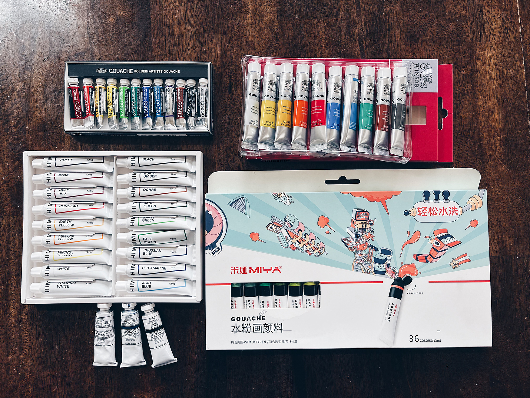 After that, I decided to get some MIYA and HIMI gouache and then from there on, got into the more familiar brands: Holbein, Winsor & Newton, and M. Graham.
