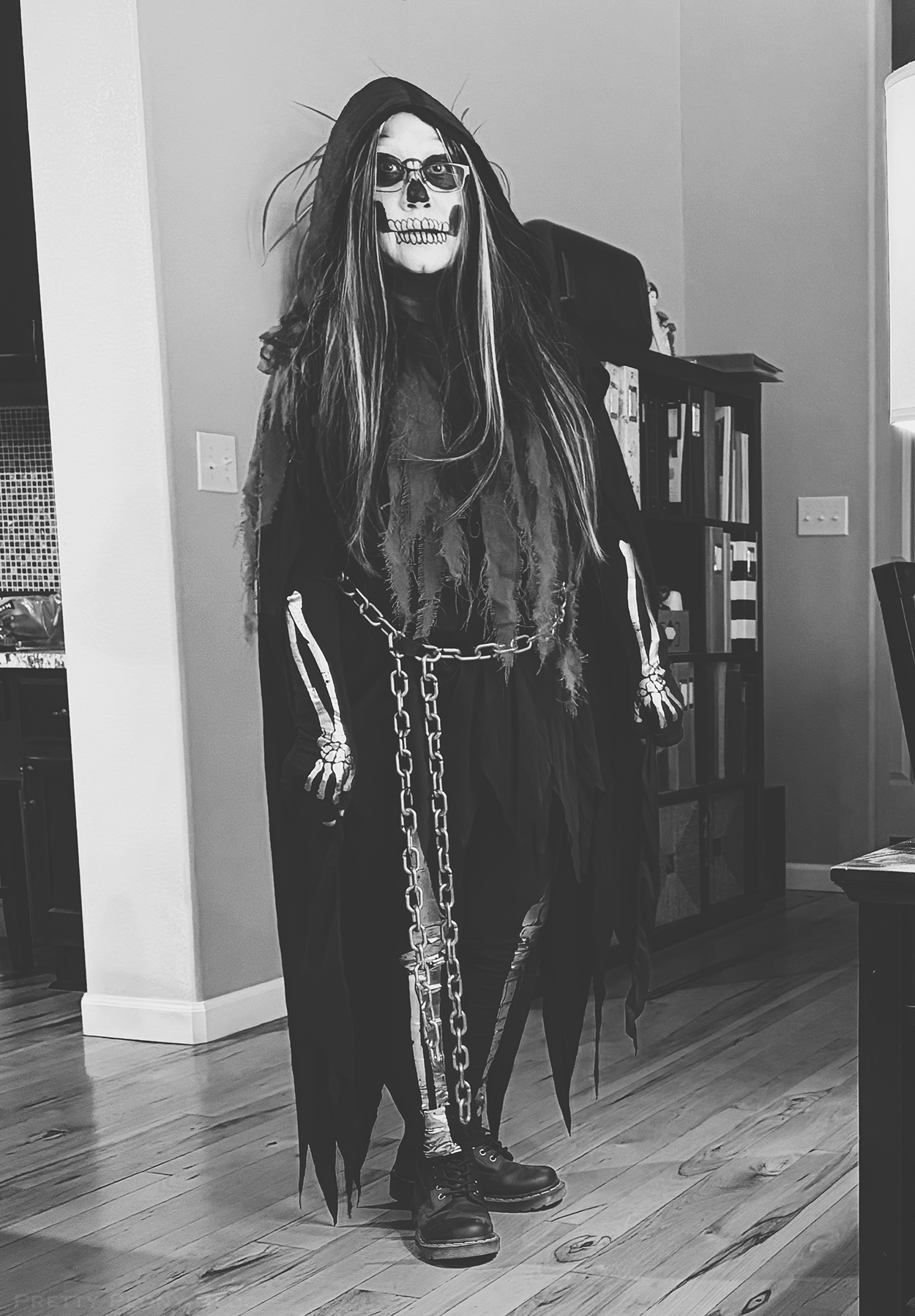 Grim Reaper For Halloween, I was the only one home, so I thought it would be fun to dress up to hand out candy. I was surprised at how many kids said they liked my costume. Share this: Click to email a link to a friend (Opens in new window) Email Click to share on Facebook (Opens in new window) Facebook Click to share on Pinterest (Opens in new window) Pinterest Click to print (Opens in new window) Print Like Loading... Related Leave a comment Cancel reply Δ
