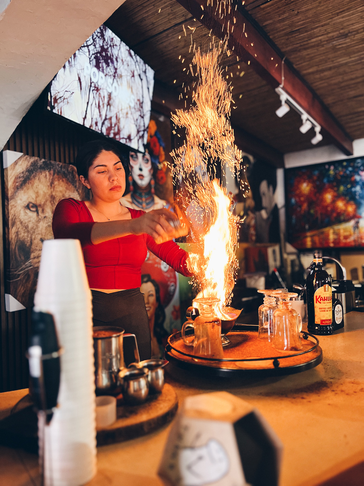 During our excursion in Ensenada, we visited a museum that was also a hotel, enjoyed lobster and churros, and then watched a woman make some amazing hot chocolate with Kahlua and fire.
