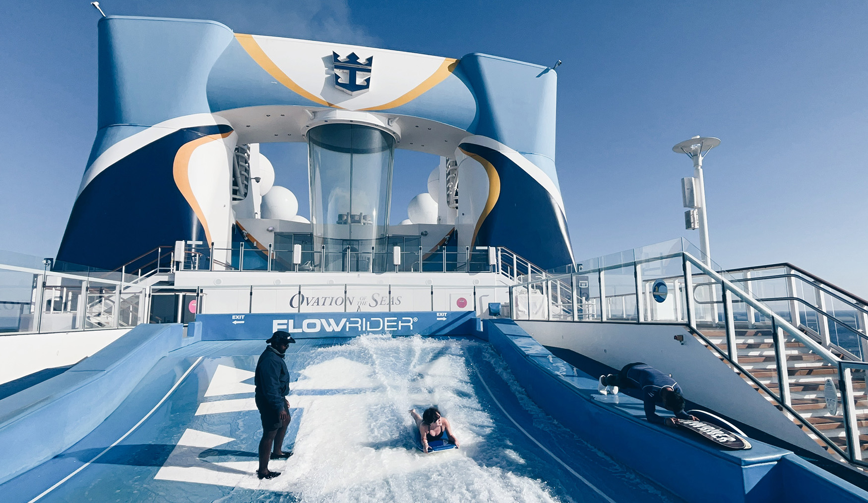 We went on this cruise to celebrate daughter’s graduation from high school. Here she is surfing on the FlowRider.